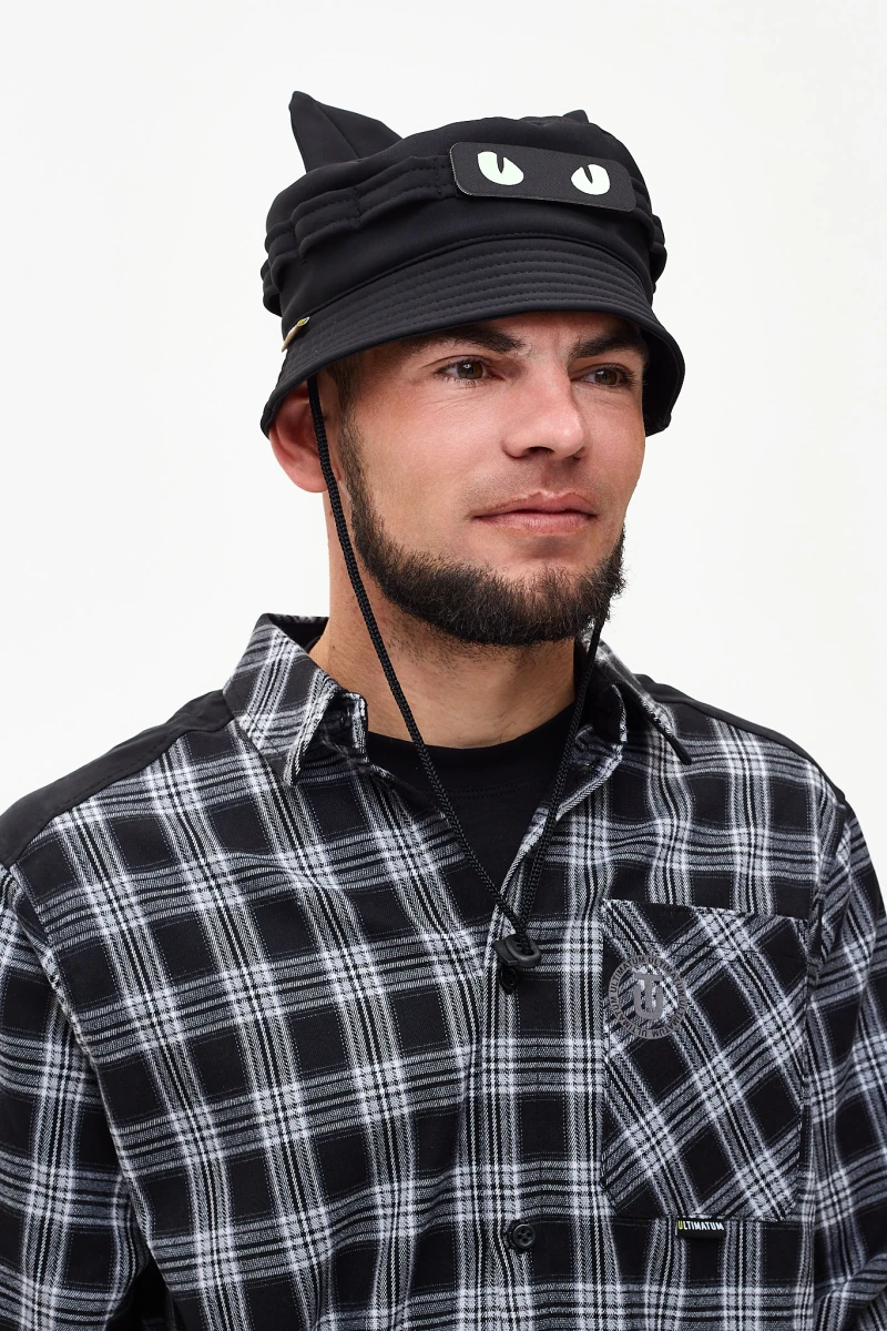 Стилізовані вушка, які за бажанням можна легко сховати, залишивши класичний силует головного убору. Це робить модель універсальною: в одному випадку – тактичний аксесуар з оригінальним і зухвалим акцентом, в іншому – стримана й лаконічна панама для повсякденного використання.