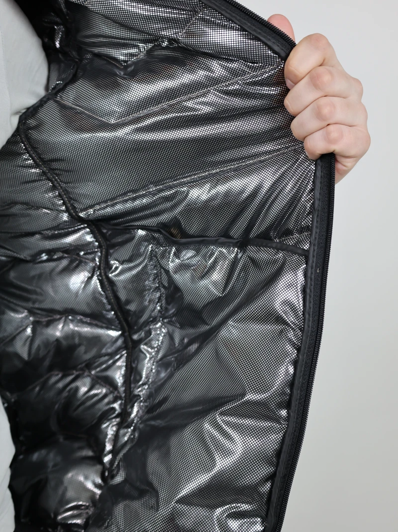 Підкладка: Omni-Heat - це технологічна тканина, яка зберігає тепло тіла, повертаючи його назад до людини, і одночасно відводить зайве тепло та вологу назовні. Це досягається за допомогою металізованих точок на підкладці, які відображають тепло, що виділяє тіло, та дозволяють одягу зберігати до 20% більше тепла порівняно зі звичайними матеріалами.