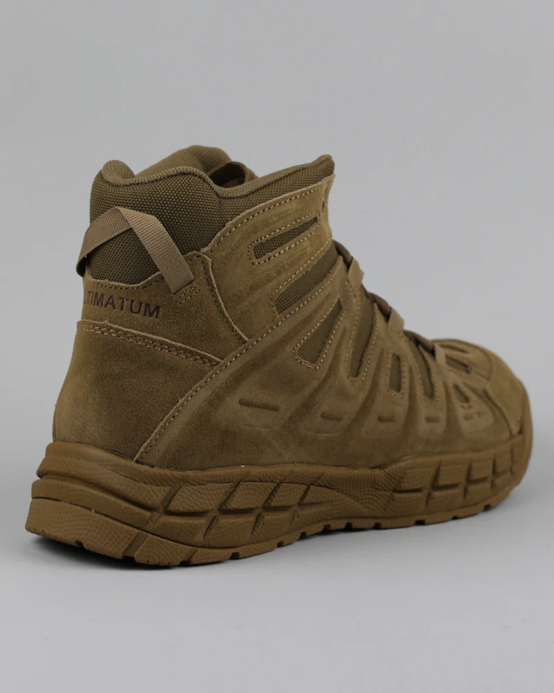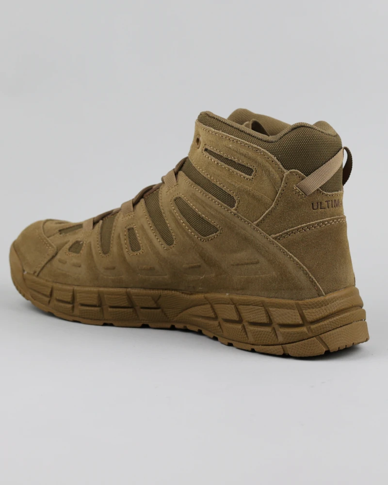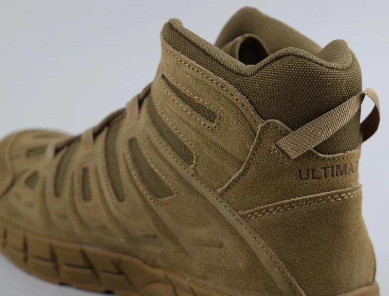 Ботинки ULTIMATUM Striker - изготовлены из изнаночной (замшевой ворсистой) толстой, при этом очень мягкой и эластичной кожи крупного рогатого скота. Вставки из материала Cordura, что делает модель более легкой, износостойкой и более воздухопроницаемой.