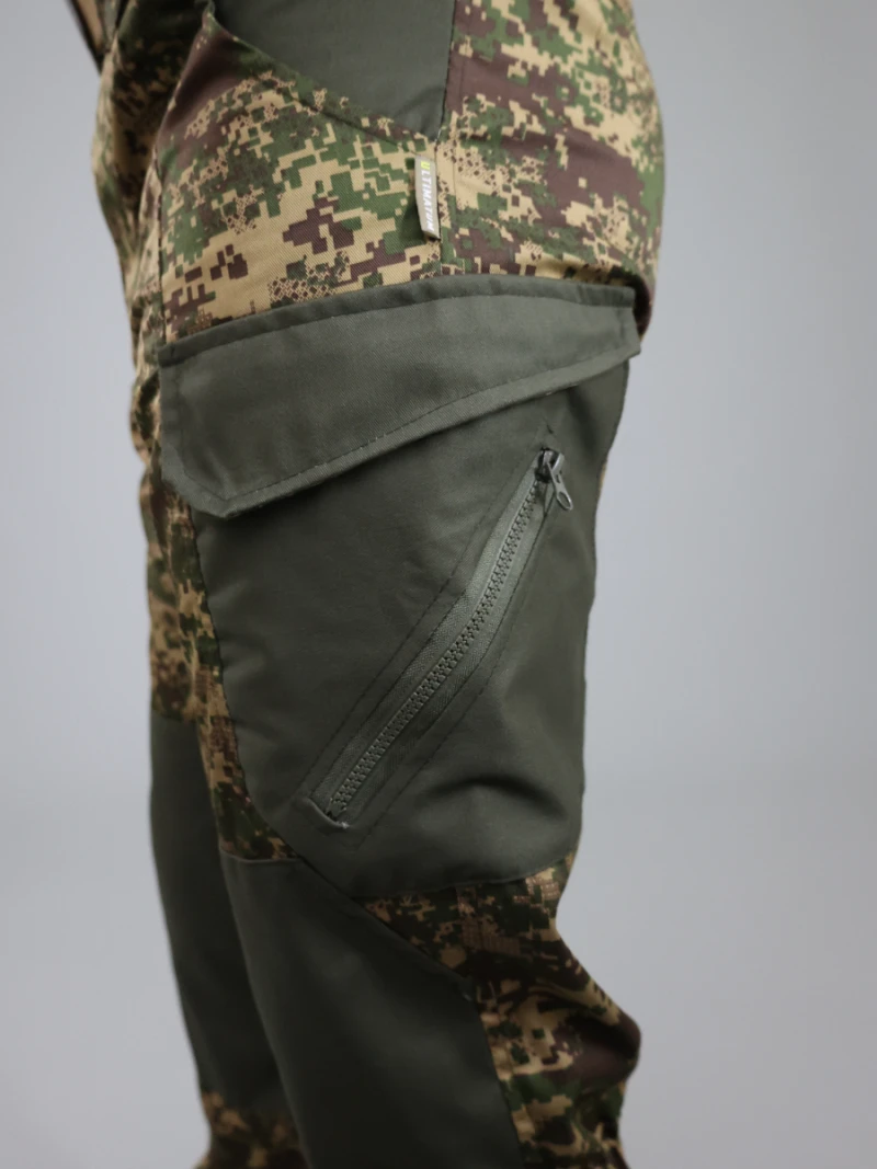 - 2 прорезные карманы по бокам на штанах и 2 накладные объемные карманы с клапанами на липучке;