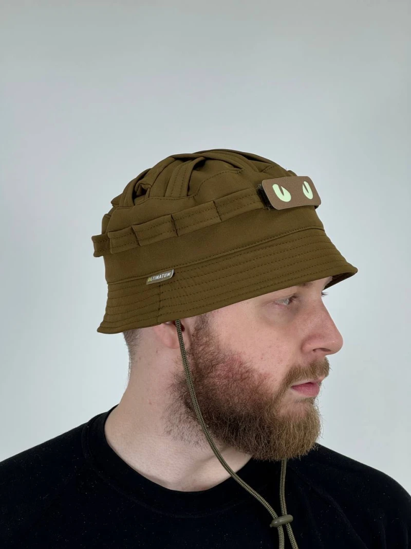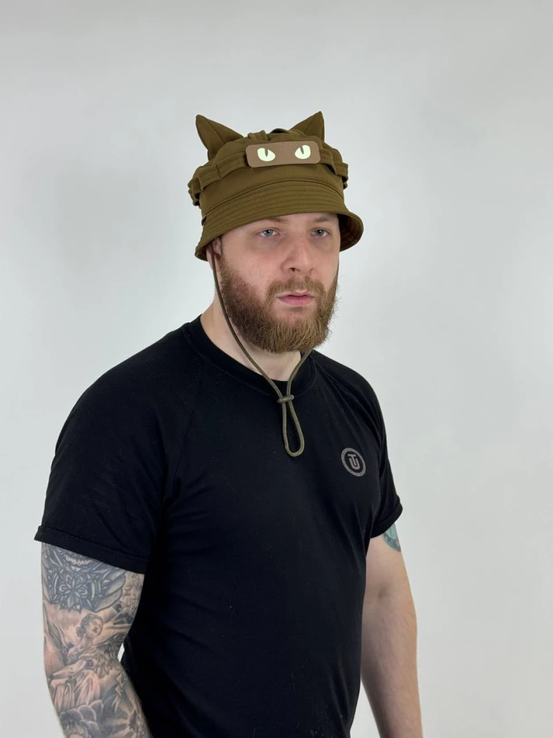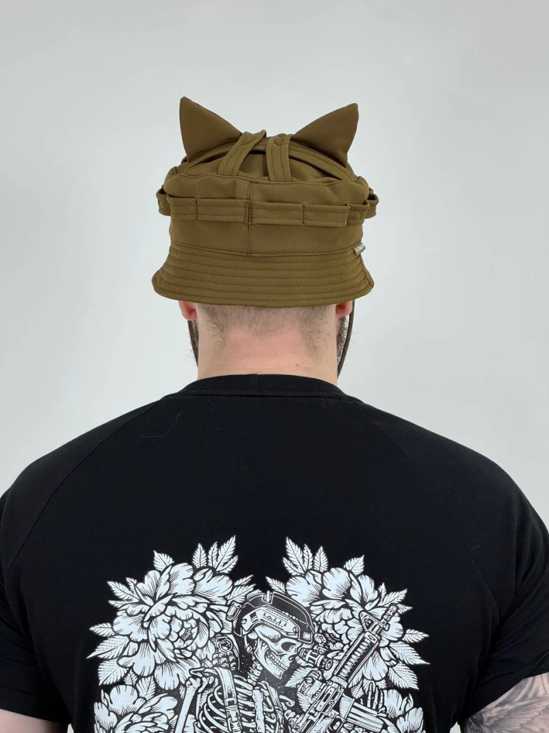 Стилизованные ушки, которые можно при желании легко спрятать, оставив классический силуэт головного убора. Это делает модель универсальной: в одном случае – тактический аксессуар с необычным и дерзким акцентом, в другом – строгая и лаконичная панама для повседневного использования.