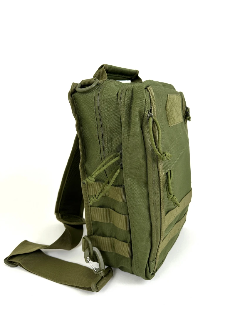 Тактическая сумка оснащена специальным креплением для принадлежностей самообороны, спереди и по бокам надежной системой Molle, на которую можно крепить дополнительные итоги, рацию и другие вещи.