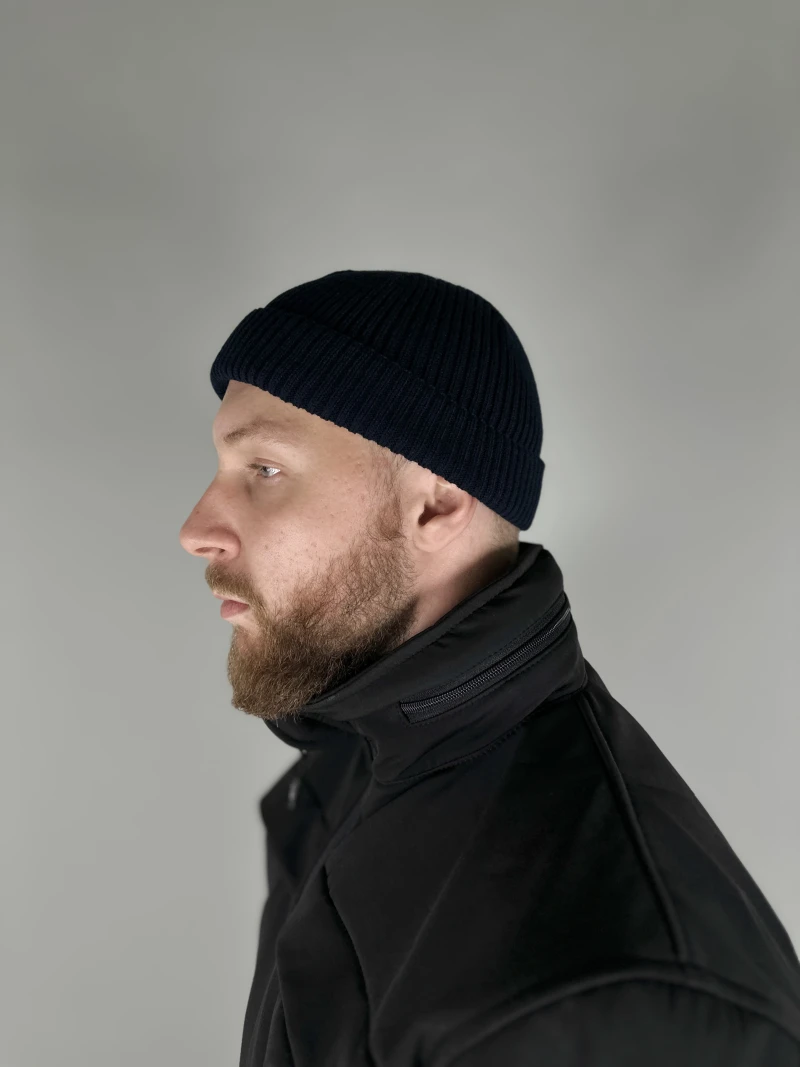 Вязаная шапка Докер, хорошо держит форму и комфортно сидит на голове. Посадку можно удобно регулировать подворотом.