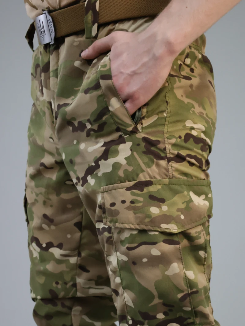 - 2 прорезные карманы по бокам на штанах и 2 накладные объемные карманы с клапанами на липучке;