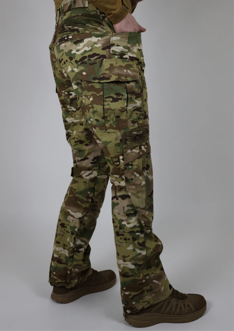 Изготовлены из прочной ткани рип-стоп — ткани с армированной структурой, устойчивой к разрывам и истиранию, что обеспечивает долговечность и надёжность в полевых условиях.