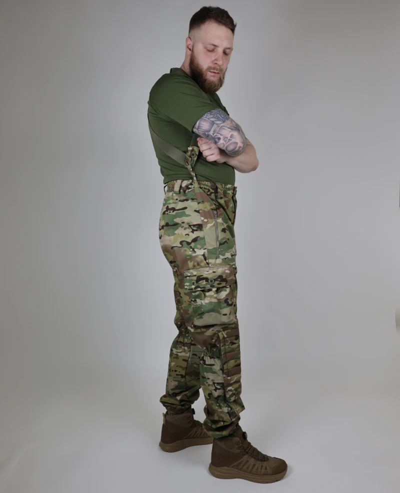 - Комплектуются эластичными подтяжками, которые равномерно распределяют нагрузку и позволяют носить штаны без ремня, особенно удобно при ношении разгрузочного жилета или пояса.