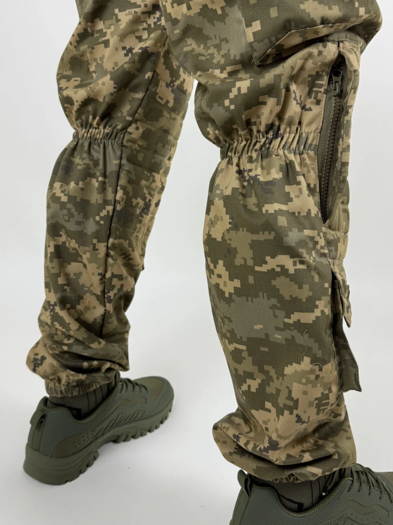 На колінах передбачені спеціальні вставки з більш щільного матеріалу. Це рішення захищає суглоби під час активних дій на нерівній поверхні, стрільби з положення сидячи або лежачи.