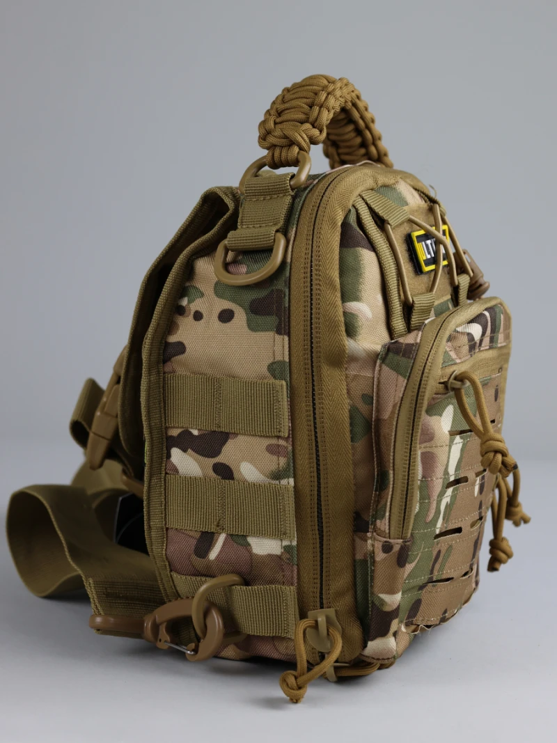 Сумка паракорд Laser ULTIMATUM RT-8025 - це універсальний аксесуар, який однаково добре підходить для міських прогулянок та активного відпочинку або тактичних дій. Продумана перфорація позбавить вас неприємних відчуттів, легку вагу і місткі відсіки, дозволять мати все необхідне під рукою. Регульована лямка, місце для шевронів, зручні змійки та застібки, ручка для носіння в руках – це лише небагато дрібниць, якими приємно здивує ця модель.